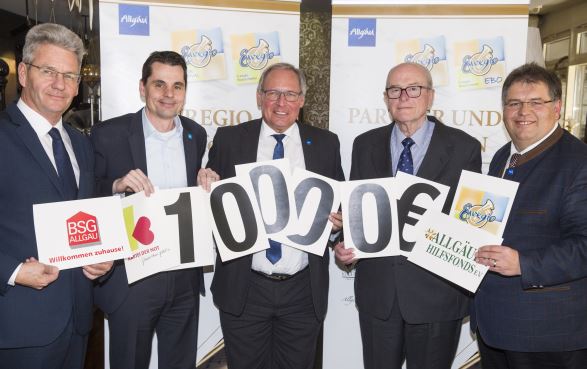 Die Gesamtspendensumme in Höhe von 7.525 Euro wurde durch BSG-Vorstandsvorsitzenden Mario Dalla Torre, BSG-Aufsichtsratsvorsitzenden Herbert Schiek an den Vorsitzenden des Allgäuer Hilfsfonds e.V. Landrat Gebhard Kaiser, Euregio Projektleiter Simon Gehring und Rolf Nehrig, Kuratoriumsmitglied der Kartei der Not übergeben. (tk)