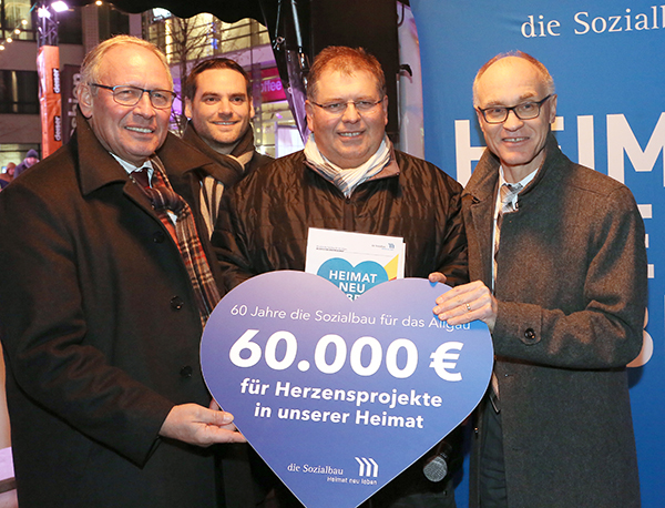 Die Sozialbau Kempten hat im Rahmen ihres Jubiläums “60 Jahre Sozialbau“ die Aktion „Herzensprojekte in unserer Heimat“ durchgeführt. Insgesamt wurden dabei 60.000 Euro für die Heimat ausgeschüttet. Bedacht wurden zahlreiche Institutionen und engagierte Bürger der Region, die sich mit ihrem „Herzensprojekt“ bewerben konnten. So freute sich Euregio-Projektleiter Simon Gehring, dass das Musikprojekt Euregio-Blas-Orchester EBO berücksichtigt wurde. „Es ist für uns ein besonderes Herzensprojekt“, so Gehring bei der Übergabe. Zugleich bedankte er sich bei den Verantwortlichen der Jury und vor allem der Sozialbau für diese großartige Idee, das Ehrenamt und somit das Engagement von Bürgern zu unterstützen. Der Sozialbau Kempten wünschen wir weiterhin viel Erfolg.